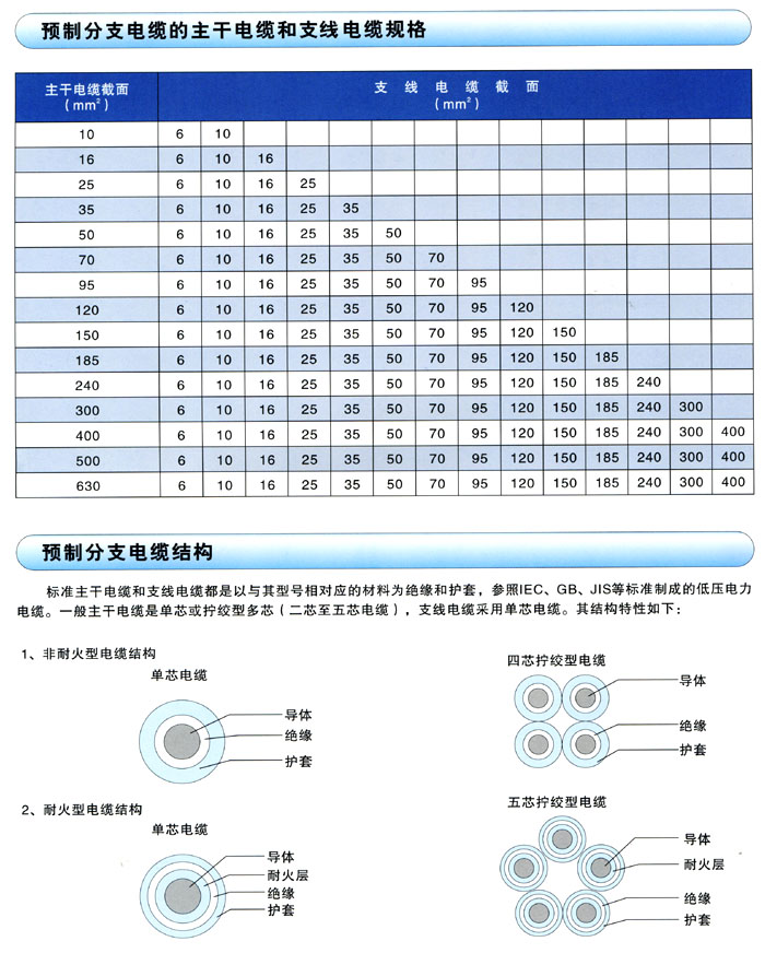 额定电压0.6/1KV铜芯塑料绝缘预制分支电缆