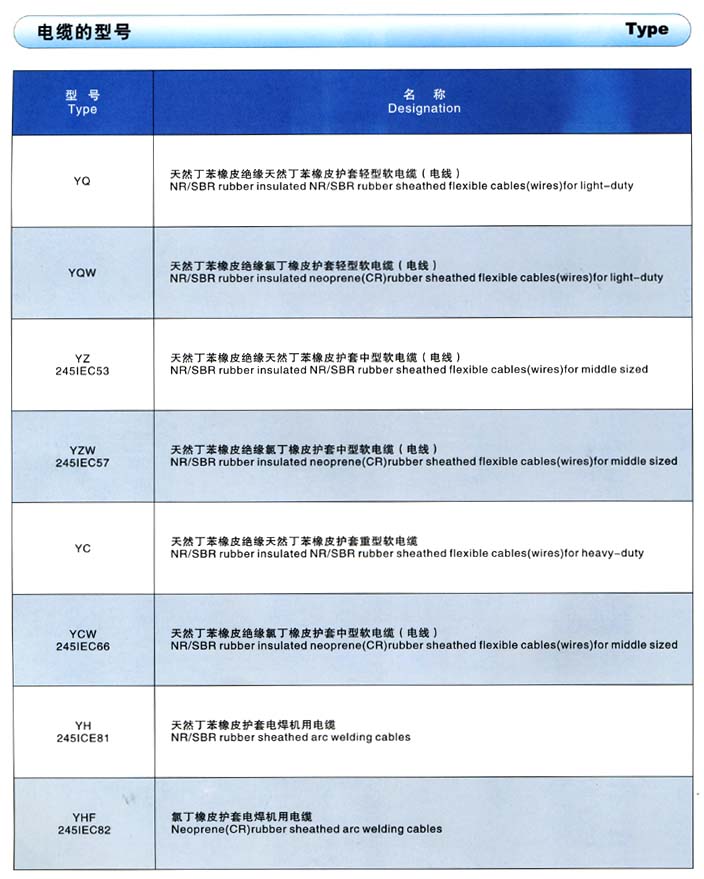 额定电压450/750V及以下橡皮绝缘电缆(电线)