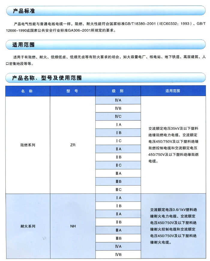 防火系列电线电缆